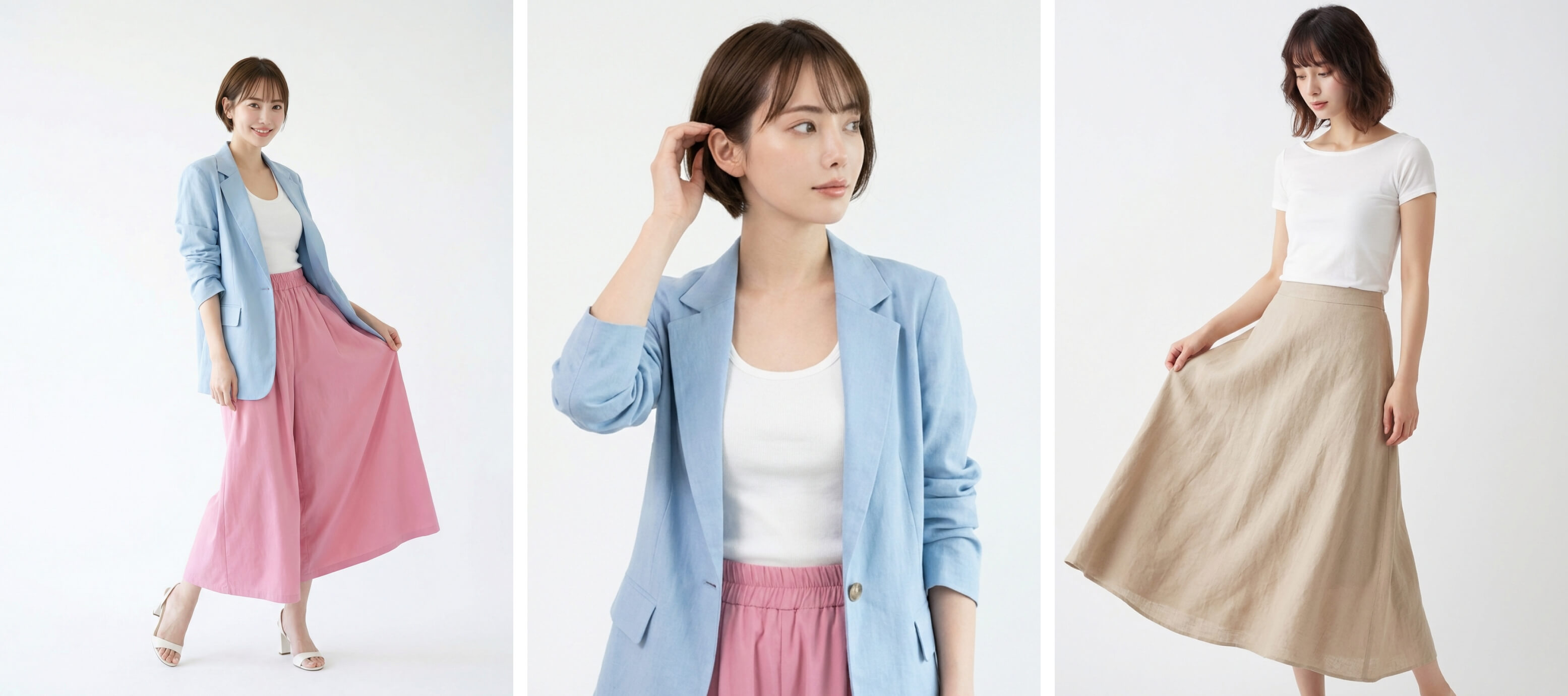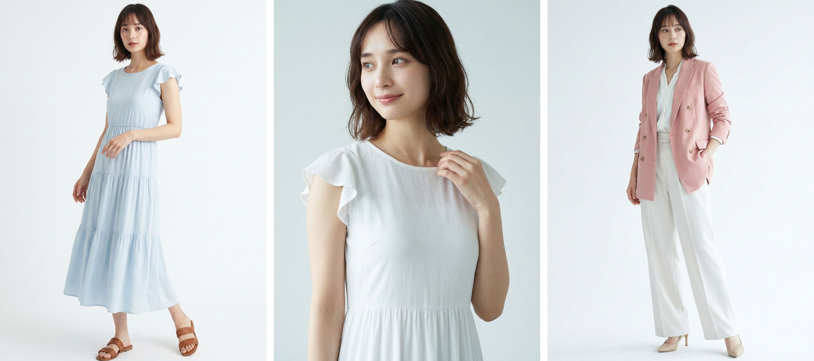 短時間生成。従来の撮影に比べて大幅に時間を短縮。数分でプロ品質の着画・広告向け素材が完成します。